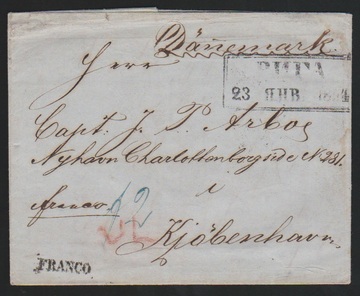 "Rußland-Dänemark", 1854, Brief aus Riga (vs. Ra2) via Hamburg an einen Schiffskapitän in Kopenhagen