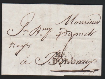 "Haiti-Frankreich", 1803, früher Brief von Jacmel nach Bordeaux mit vs. Maritime-L2 von Bordeaux
