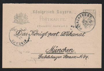 Antwort-Ganzsachenkarte 2 Pfg. grau 1902 als Ortskarte aus München gelaufen