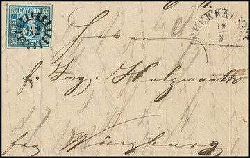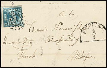 "17", oMR nebst HK "Ampfing" klar auf Prachtbrief 3 Kr. blau