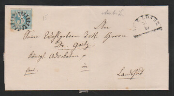 "15", gMR nebst HK "Au b. Ldsht." auf gef. Brief 3 Kr. blau (etwas randfleckig)