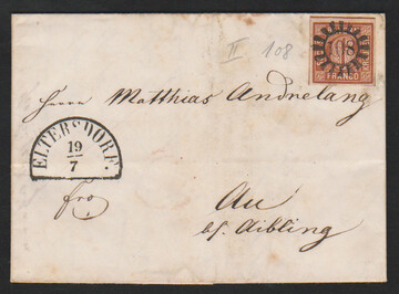 "108", gMR nebst HK "Eltersdorf" klar auf etwas getöntem Brief mit Prachtstück 6 Kr. braun