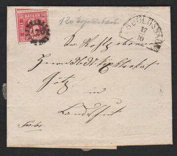 "120", gMR nebst HK "Ergoldshausen" auf Prachtbrief 3 Kr. karmin