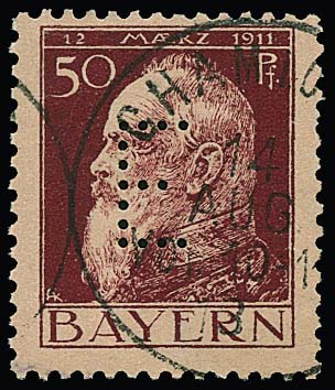 50 Pfg., Type I, tadelloses Exemplar mit klarem Stempel "CHAM i. OPF. 14/8 13". Eine seltene Marke, von der in fehlerfreier Erhaltung nur wenige Exemplare erhalten geblieben sind. Kopie von Fotoattest Dr. Helbig für einen Viererblock, aus dem die Marke stammt. Mi. 2200,- +