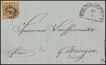 "193", gMR nebst HK "Helmbrechts" klar auf gef. Kabinettbrief 9 Kr. braun