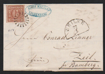 "391", gMR nebst HK "Röthenbach Bahnhof" klar auf Kabinettbrief 6 Kr.