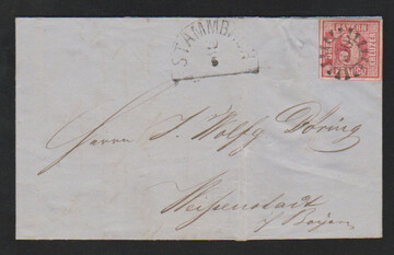 "500", gMR nebst HK "Stammbuch" auf Brief (Papierfehler) mit Prachtstück 3 Kr. rosa
