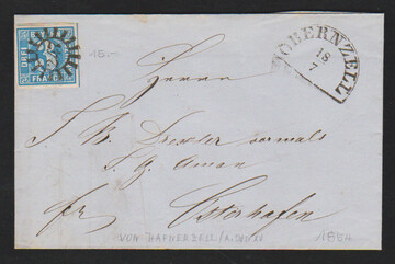 "247", gMR nebst HK "Obernzell", auf Prachtbrief 3 Kr. blau