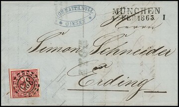 1 Kr. rosa auf weißem Luxus-Ortsbrief mit klarem L2 "München"