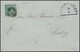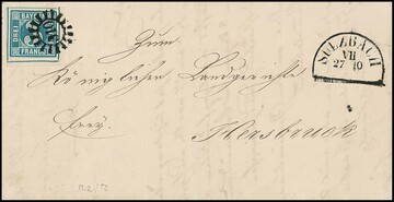 3 Kr. blau, Luxus-Bogenecke rechts unten mit allen vier Schnittlinien und klarem gMR "310" nebst HK "Sulzbach" auf Brief nach Hersbruck