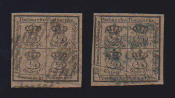 4/4 Ggr. schw./braun, zwei gestempelte Kabinettstücke je mit deutlichen, herstellungsbedingten Quetschfalten, Mi. 260,- +