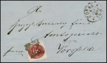 "44" nebst blauem Ra2 "Velpke" auf Brief 1 Sgr. schw./gelb, trotz kl. Mgl. auf Brief ein sehr seltener NS, Feuser + 1000,-