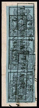 1 Ggr. schw./graublau im senkrechten Dreierstreifen auf Kabinettbriefstück mit mehrfachem Ra2 "Winsen a.d. Luhe", sign. Drahn. Mi. 1000,-