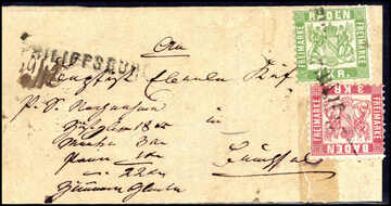 1 Ggr. schw./graublau, breitrandiger Dreierstreifen (auf Restbriefstück, Bugspur) mit Ra2 "Rotenburg", Mi. 1000,-