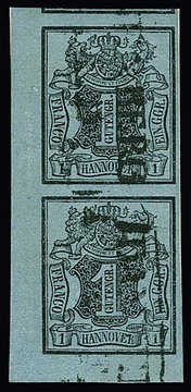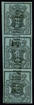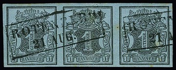 1 Ggr. schw./graublau, senkrechter, gut gerandeter Dreierstreifen, etwas ("hannover-") hell, mit zweifachem L1 "Goerde", Mi. 1000,-
