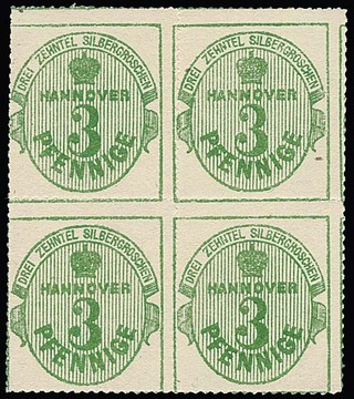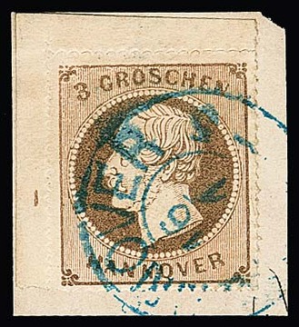 3 Gr. hellbraun, linke obere Bogenecke mit Reihenzahl "1" auf Kabinettbriefstück mit K2 "Hannover", oben Durchstich geringfügig angetrennt, sign. Kleeberg und Fotoexp. Jäschke-L.