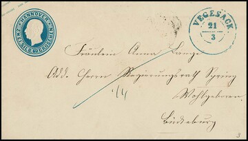 1866: Seltener Letzttagsbrief der hannoverschen Posthoheit, Brief mit Preußen 1 Sgr. Wappen, entwertet mit blauem K2 "Wittlage" vom 31.12.1866, Brief mit Inhalt, rs. Ankunftsstempel von Melle vom 1. Januar. Ab 1. Jan. 1867 war die hannoversche Post in die preußische Postverwaltung überführt worden