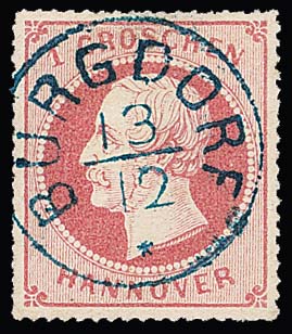 1 Gr. rosa, Luxusstück mit zentrischem K1 "Burgdorf", dazu gest. Kabinett-Randstück 1 Gr. rosakarmin sowie ungebr. Paar 2 Gr. blau, ex Slg. Erivan Haub