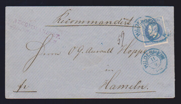 2 Gr. blau, Prachtstück mit K2 "Suhlingen" auf eingeschriebenem Expreßbrief ("Theilungssache, frei") nach Landesbergen, etwas unfrisch