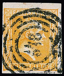 3 Sgr. orange, Kabinettstück mit hierauf seltener Nummernstempel-Entwertung durch NS "578" (Hamburg), sign. Meier, Krause, Banker. Mi. 500,-