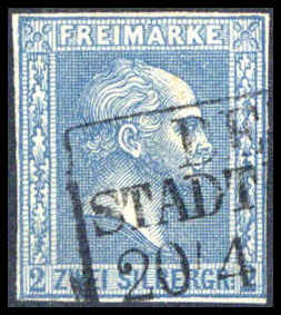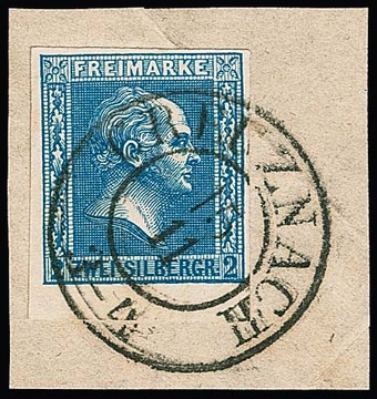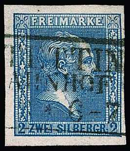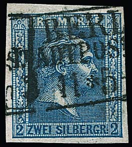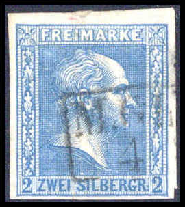 2 Sgr. blau, Plattenfehler "Schnupfnase", gest., noch vollrandiges Prachtstück, Fotoexp. Flemming