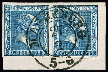 2 Sgr. blau im Paar vom rechten Bogenrand auf Kabinett-Briefstück mit zentrischem K2 "Magdeburg", rechte Marke Plattenfehler "dicke 2", sign. Krause, ex Slg. Erivan Haub