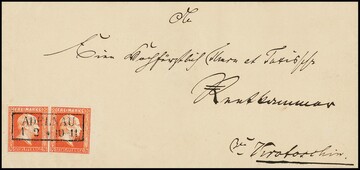 1/2 Sgr. ziegelrot per zwei auf schön gestempeltem Kabinettbrief mit Ra2 "Adelnau" nach Krotoschin. Sign. Brettl, ex Metzer, Attest Jäschke-L., ex Slg. Erivan Haub