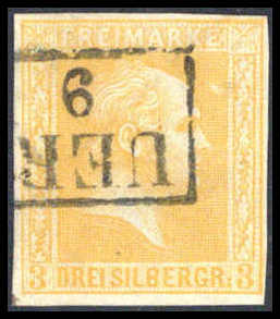 3 Sgr. orange, Plattenfehler "weißer Fleck an der Stirn", gest. Prachtstück, Fotoexp. Flemming. Mi. 200,-