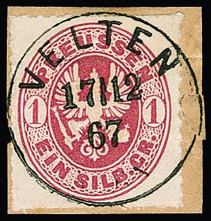 1 Sgr. rosa, Luxusstück mit "gestochen klarem" Grotesk-K1 "Velten" auf Briefstück (dieses am Rand kl. Papierfehler verklebt), sign. Krause, Kastaun, Köhler, ex Slg. Erivan Haub