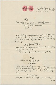 1 Sgr. karmin per zwei in seltener Verwendung der Frei- als Gebührenmarken auf Tauf-Register-Auszug aus Holzhausen 1867, hs. "Cassierter Siegel" (man hatte wohl kein Siegel zur Entwertung zur Hand), ex Slg. Erivan Haub