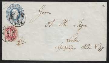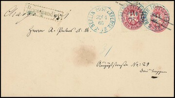 1 Sgr. rosa, perfektes Exemplar auf Ganzsache 1 Sgr. rosa, als Orts-Einschreibebrief aus Berlin 1866