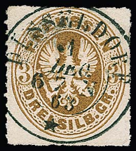 3 Sgr. ockerbraun, Kabinettstück mit seltenem neuem Grotesk-K1 "Neuharlingersyhl", ex Slg. Erivan Haub