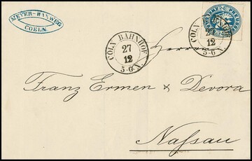 2 Sgr. preußischblau auf gef. Kabinettbrief mit Ra2 "Cöln Bahnhof", ex Slg. Erivan Haub