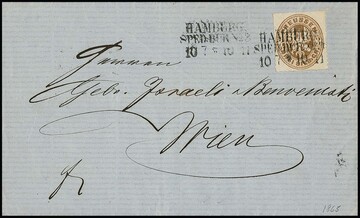 3 Sgr. dunkelbraun auf Kabinettbrief mit L3 "Hamburg Sped. Bur. No. 3" nach Wien, ex Slg. Erivan Haub