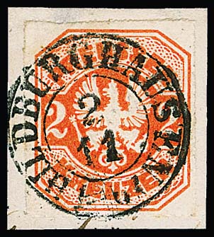 2 Kr. orange auf Luxusbriefstück mit Taxis-K2 "Hildburghausen" zentrisch, ex Slg. Erivan Haub
