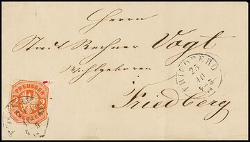 2 Kr. orange einzeln auf Prachtbrief mit nachverw. K1 "Homburg v.d.H." nach Bockenheim, Mi. 600,-