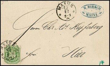 1 Kr. grün einzeln auf Ortsbrief aus Mainz, sign. Bühler, ex Slg. Erivan Haub