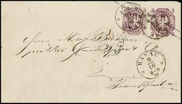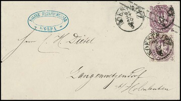 3 Pfge. rotlila im Paar auf Kabinettbriefstück mit besserem nachverw. Taxis-Fingerhut-K1 "Stadtsulza", Attest Wasels. Mi. 1000,-