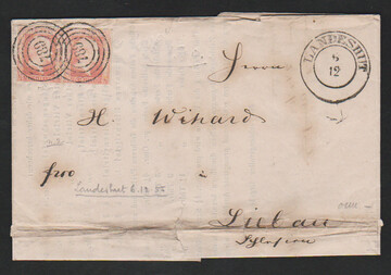 "789" nebst K2 "Landeshut" auf Drucksache (!, unten in der Faltung Papiermängel) mit Paar 1/2 Sgr. (links ber.)