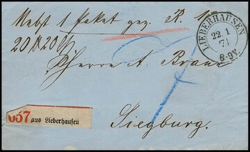 "Lieberhausen", 1869-1871, sehr seltener Gummersbacher K2 auf 29 Paketbegleitbriefen (einmal ohne Stempel, teils typische Gebrauchsspuren) aus einer Korrespondenz nach Siegburg