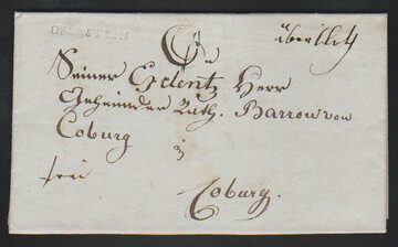 "Oberstein", 1827, kleiner L1 auf Brief, Bittbrief des Gemeinderates von Mittelbollenbach an den Baron von Coburg