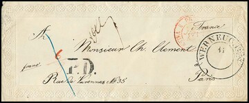 "Werneuchen", K2 1850 auf hübschem Auslands-Präge-Ziercouvert nach Paris
