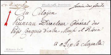 "Wickrath", 1798, hs. Aufgabe "D: Wickrath" auf Brief nach Aachen (unten Klebestelle)