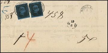 2 Sgr. schw./blau, teils überrandiges Kabinettpaar auf eingeschriebenem Doppelbrief mit NS "868" und Ra3 "Lissa R.B. Posen" 1851 nach Posen, sign. Kruschel, ex Slg. Erivan Haub