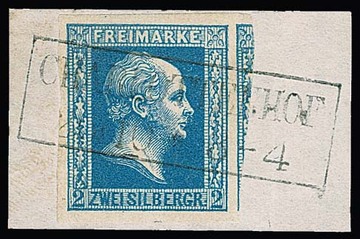 2 Sgr. blau, schmelziger Druck, überrandig, auf Luxusbriefstück mit vollem Ra2 "Charlottenhof", sign. Kastaun, Engel, Krause, Grobe, Metzer, ex Slg. Erivan Haub