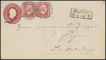 1 Sgr. rosa, Kabinettpaar mit NS "1369" und Neben-Ra2 "Schwedt" auf Ganzsache 1 Sgr. rosa (in den Eckchen kl. Flecken), sign. Metzer, ex Slg. Erivan Haub
