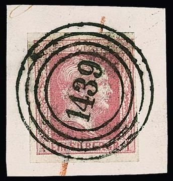 1 Sgr. karmin, überrandig, auf Kabinettbriefstück mit klarem NS "1439" (Stahltype von Stettin), ex Slg. Erivan Haub