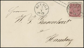"Büchen", nachverw. K1 klar auf NDP Aufbrauchs-Ganzsache 1 Gr. auf 3 Pfge. (für das ehemalige Taxis-Gebiet!)