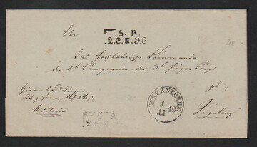"Christiansfeld", 1849, K1 und seltener Fraktur-L2 "Christiansfelder Lazareth" auf Brief (unten Einriß gestützt) mit militärischer Adresse