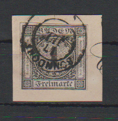 1 Kr. schwarz, weitgehend vollrandig, auf Prachtbriefstück mit besserem Orts-K2 "Bonndorf"